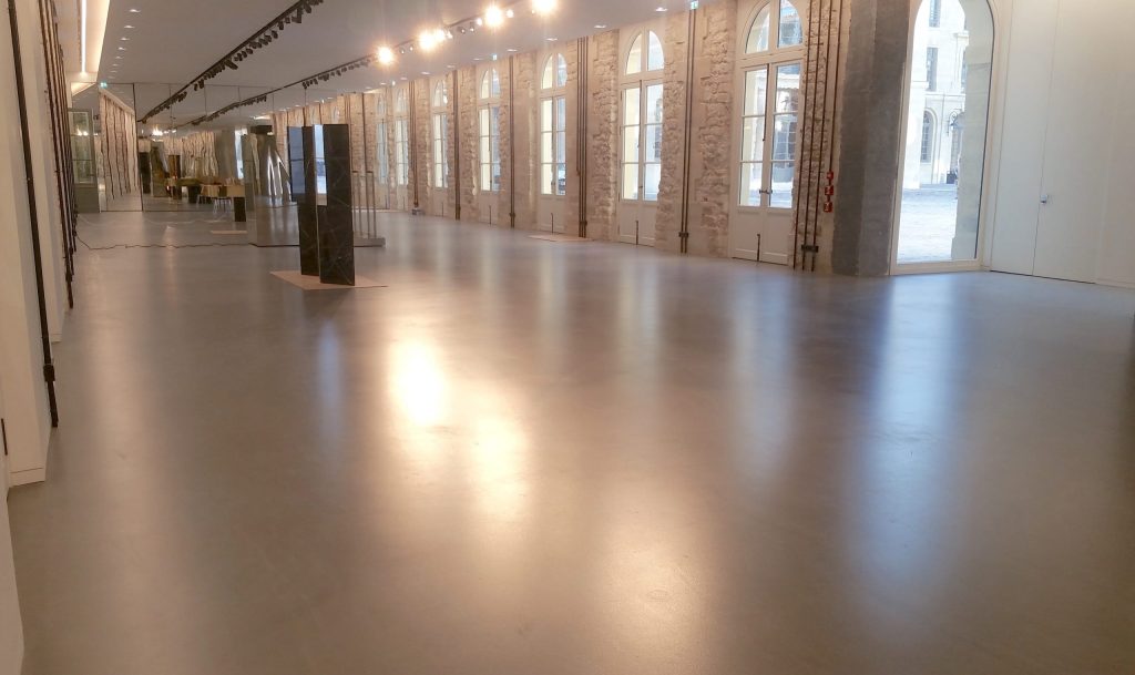 Dans le cadre de la réhabilitation de l’ancienne Abbaye de Penthemont pour les locaux du siège d’un grand couturier, coulage des sols des showrooms et de multiple surfaces de réception. 2500m2 en béton auto lissant décoratif.
